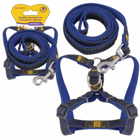 Шлейка прогулочная с поводком Джинс размер L VL40-34 /12