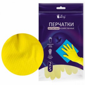 Перчатки латексные Libry хоз с х/б эластичные желтые S /240
