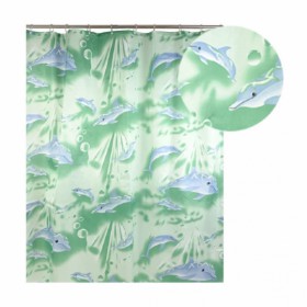 Шторки душевые Аквалиния виниловые 020А-06 зеленые дельфины