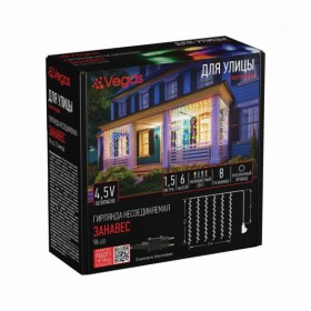 Электрогирлянда VEGAS Занавес 96 разноцв LED ламп прозрач провод 6 нитей 8 режим с блок питания 1.5х