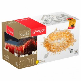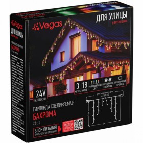 Электрогирлянда VEGAS LED Бахрома прозр провод 72 кр ламп 18 нитей таймер/блок п-я/уд/я в бокс 3x06м