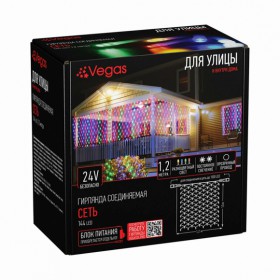 Электрогирлянда-конструктор VEGAS LED Сеть прозр провод 144 разноцв ламп 12x15м 55109 /4