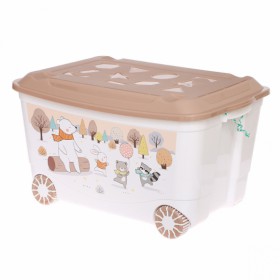 Ящик д/игрушек на колесах с декором Зверушки на опушке тем-беж 580x390x335мм 45л /4