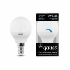 Лампа Gauss Шар 7W 590lm 6500К E27 диммируемая LED 1/10/100