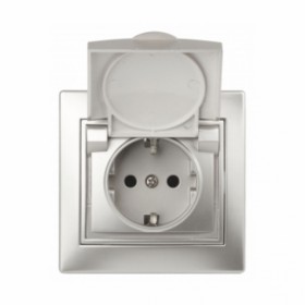 Розетка Intro Plano Schuko с/з с крышкой 16А-250В алюминий