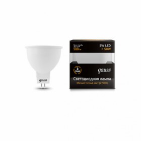 Лампа Gauss LED MR16 5W 500lm 3000K GU5.3 диммируемая 1/10/100