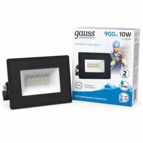 Прожектор Gauss Elementary 10W 850лм 6500К 200-240V IP65 PROMO черн LED /10