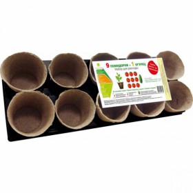 Набор для рассады с торфяными горшками 9 помидоров и 1 огурец