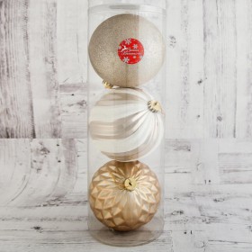 Набор шаров пластик 15см 3шт Праздничное ассорти бело-золотой 1305764 /12