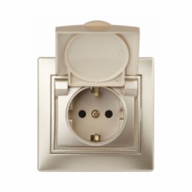 Розетка Intro Plano Schuko с/з с крышкой 16А-250В шампань