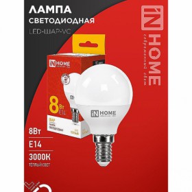 Лампа IN HOME светодиод LED-ШАР-VC 8Вт 230В Е14 3000К /30