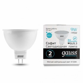 Лампа Gauss Elementary MR16 9W 4100K GU5.3 LED 1/10/100