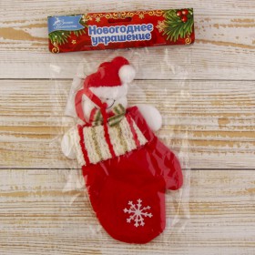 Украшение на елку Варежка Снеговик блестящие полосочки 20х10см 718474
