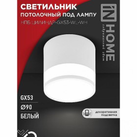 Светильник потолочный IN HOME НПБ Цилиндр-GX53-WL-WH п/лампу GX53 90x115мм бел /10