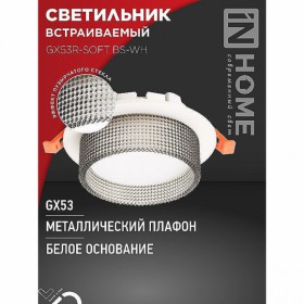 Светильник встраиваемый IN HOME GX53R-Soft BS-WH п/лампу GX53 дым плафон бел 110x53мм /20