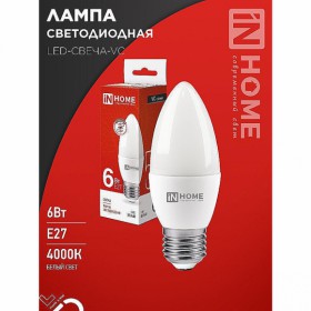 Лампа светодиод IN HOME LED-Свеча-VC 6W 230V Е27 4000К 570Лм /100