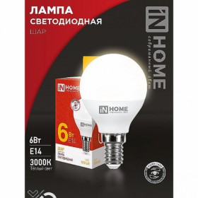 Лампа светодиод IN HOME LED-Шар-VC 6W 230V Е14 3000К 570Лм /50
