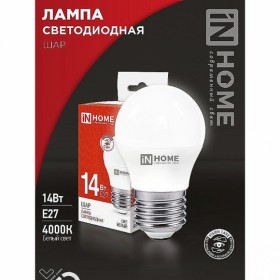 Лампа светодиод IN HOME LED-Шар-VC 14W 230V E14 4000K 1330Лм /100