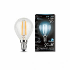 Лампа Gauss LED Filament Globe E14 5W 4100K 1/10/50