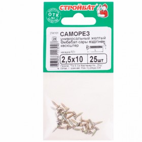 Саморезы Стройбат универсал 2.5x20 желт цинк 25шт 032051
