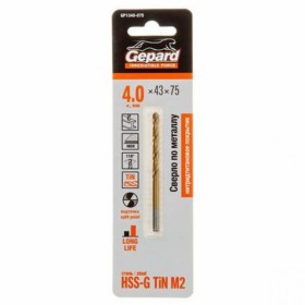 Сверло GEPARD по металлу 4.0мм нитридтитан покрытие GP1340-075