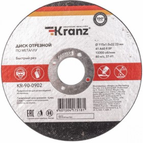 Диск отрезной Kranz по металлу 115x1.0x22.23мм