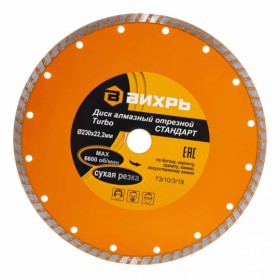 Диск алмазный Вихрь отрезной турбо стандарт 230x22.2мм