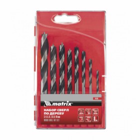 Набор сверел MATRIX по дереву 3-4-5-6-7-8-9-10мм 8шт шестигран хвостовик пластик кейс