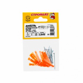 Дюбель СтройБат универсал 5x32 с самор 3x40 12шт