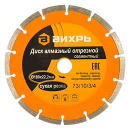 Диск алмазный Вихрь сегментный сухая резка 180х22.2мм