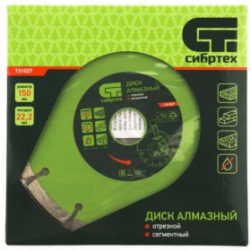 Диск Сибртех алмаз отрез сегмент 150х22.2мм сухая резка 731027