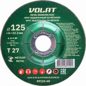 Круг шлифовальный ВОЛАТ по металлу 125x6x22.2 89125-60
