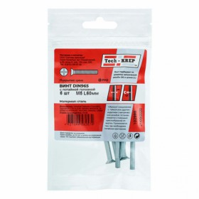 Винт Tech-Krep DIN965 с потайной головкой оцинк М5x60 6шт пакет 102998