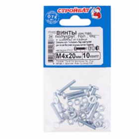 Винт СтройБат оцинк пкр DIN7985 М 4х20 с гайк и шайб 10шт