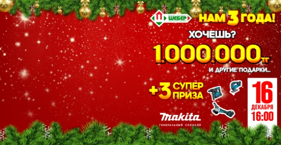 Бізге 3 жыл! «Шебер»-де 1 000000 теңге жеңіп ал!