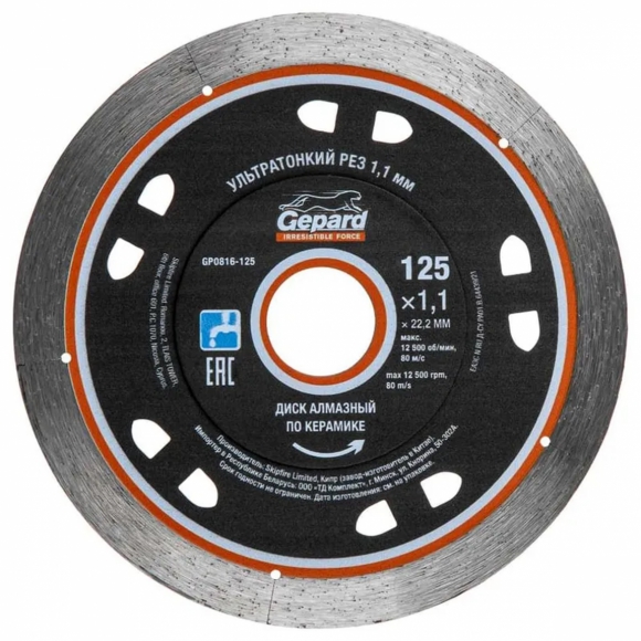 Диск алмазный GEPARD 125x22 по керамике ультратонкий рез 1.1мм GP0816-125