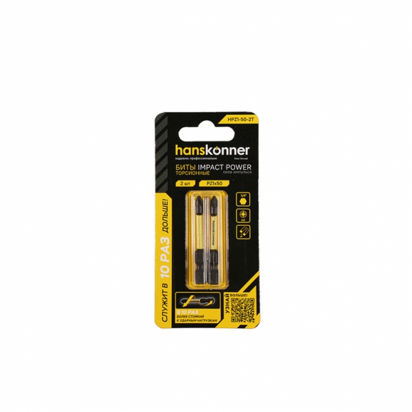 Биты Hanskonner ImpactPower торсионные 2шт PZ1x50мм HPZ1-50-2T