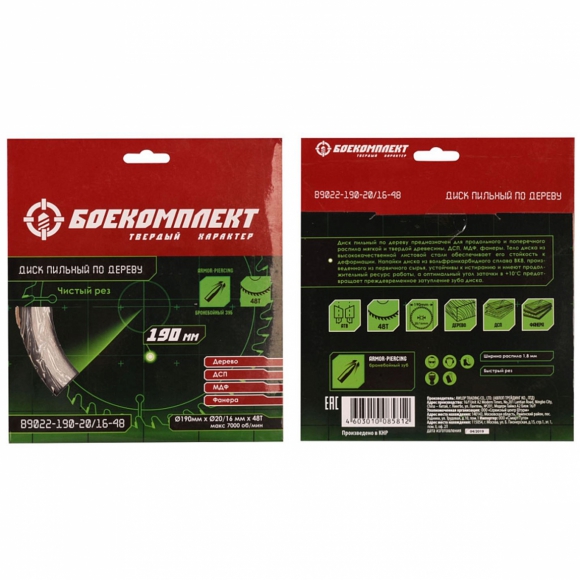 Диск пильный БОЕКОМПЛЕКТ по дереву 190x20/16мм 48 зубьев B9022-190-20/16-48