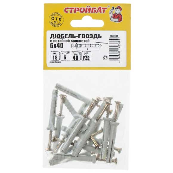 Дюбель-гвоздь Стройбат 6x40 потай 18шт