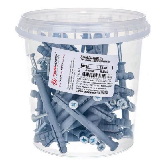 Дюбель-гвоздь Tech-Krep пот манжета полипропилен черный 8х80 50шт ведро