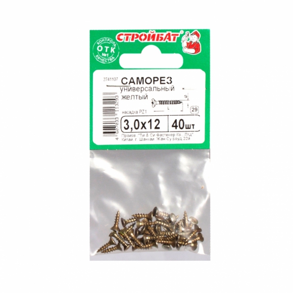 Саморезы Стройбат универсал 3.0x12 желт цинк 40шт 032081