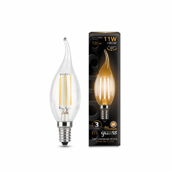 Лампа Gauss Filament Свеча на ветру 11W 2700К Е14 LED 1/10/50