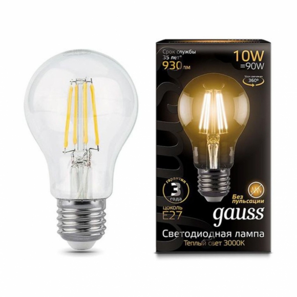 Лампа Gauss Filament А60 10W 930лм 2700К Е27 LED /30