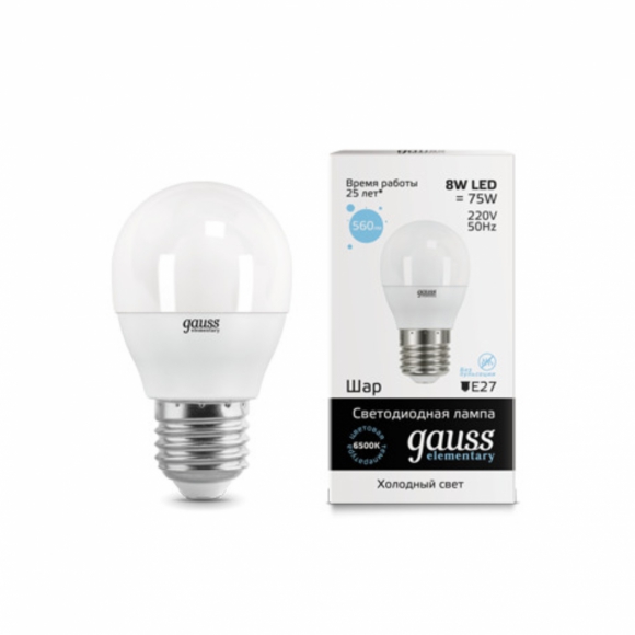 Лампа Gauss LED Elementary Шар 7W 470lm E27 4100K