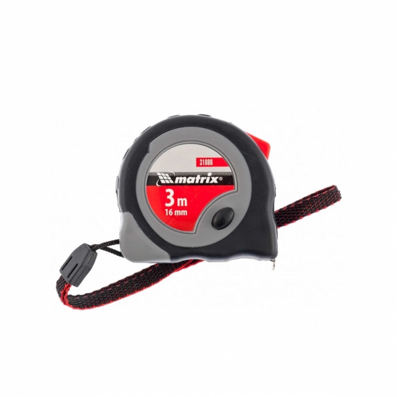 Рулетка MATRIX Continuous fixation обрезиненный корпус плавная фиксация 3мх16мм