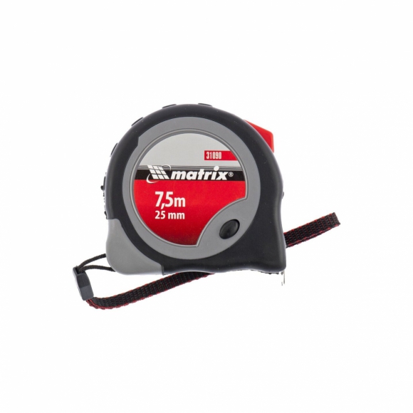 Рулетка MATRIX Continuous fixation обрезиненный корпус плавная фиксация 7.5мх25мм 31090