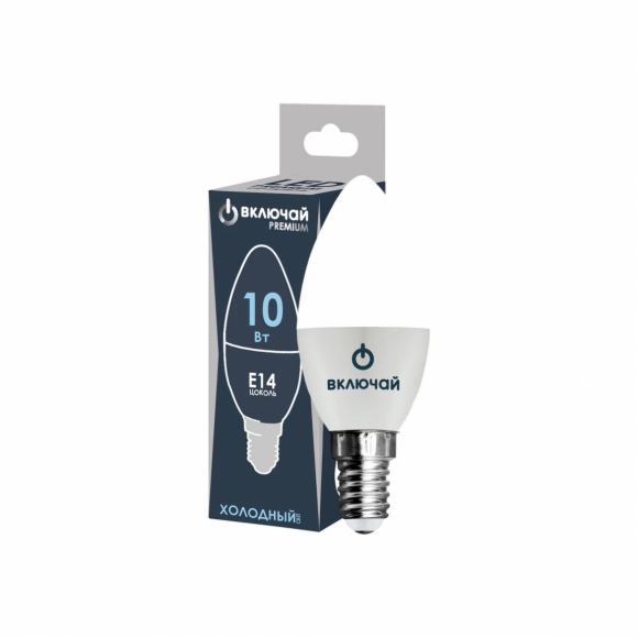 Лампа светодиод Включай 10W E14 Свеча 6500K 220V