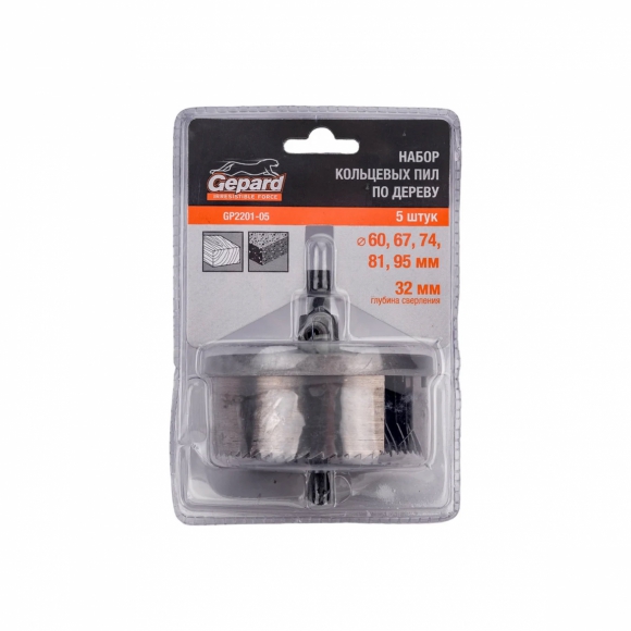 Набор кольцевых пил GEPARD по дереву 60-95мм 5пр GP2201-05
