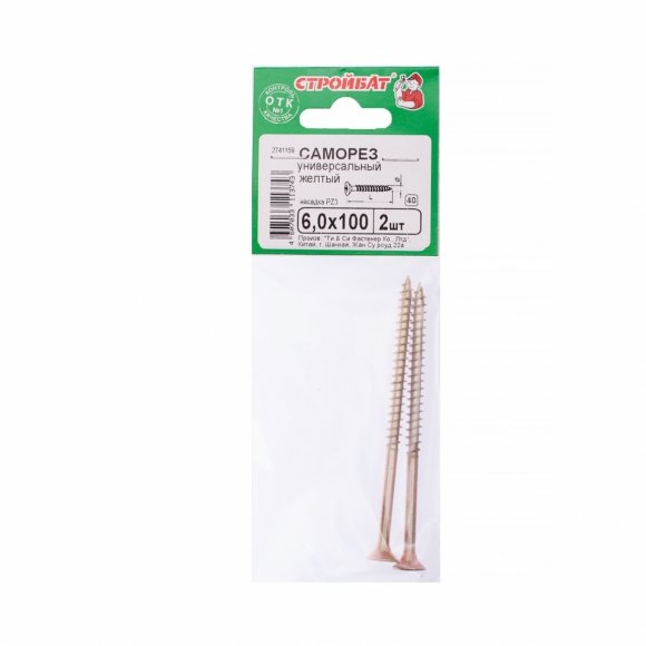 Саморезы Стройбат универсал 6.0x100 желт цинк 2шт 032541