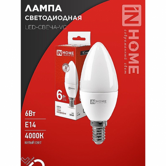 Лампа IN HOME светодиод LED-СВЕЧА НА ВЕТРУ-VC 6Вт 230В Е14 4000К /30